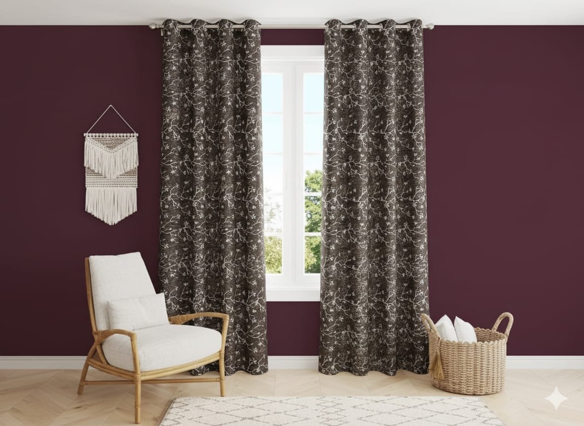 Door Curtains 1 Pieces Flower design Eyelet Polyester – 7 Feet