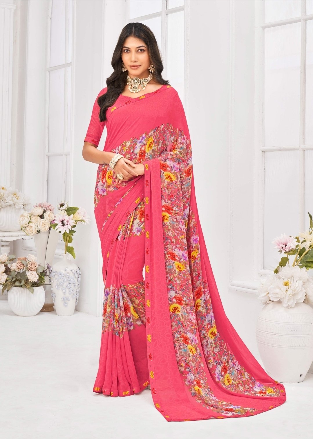 Laxmipati Dil Khushal Floral Printed Georgette Saree in Pink Color with Unstitched Blouse