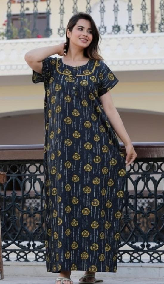 Stylish Cotton Printed Gown Ankle Length Nighty Free Size