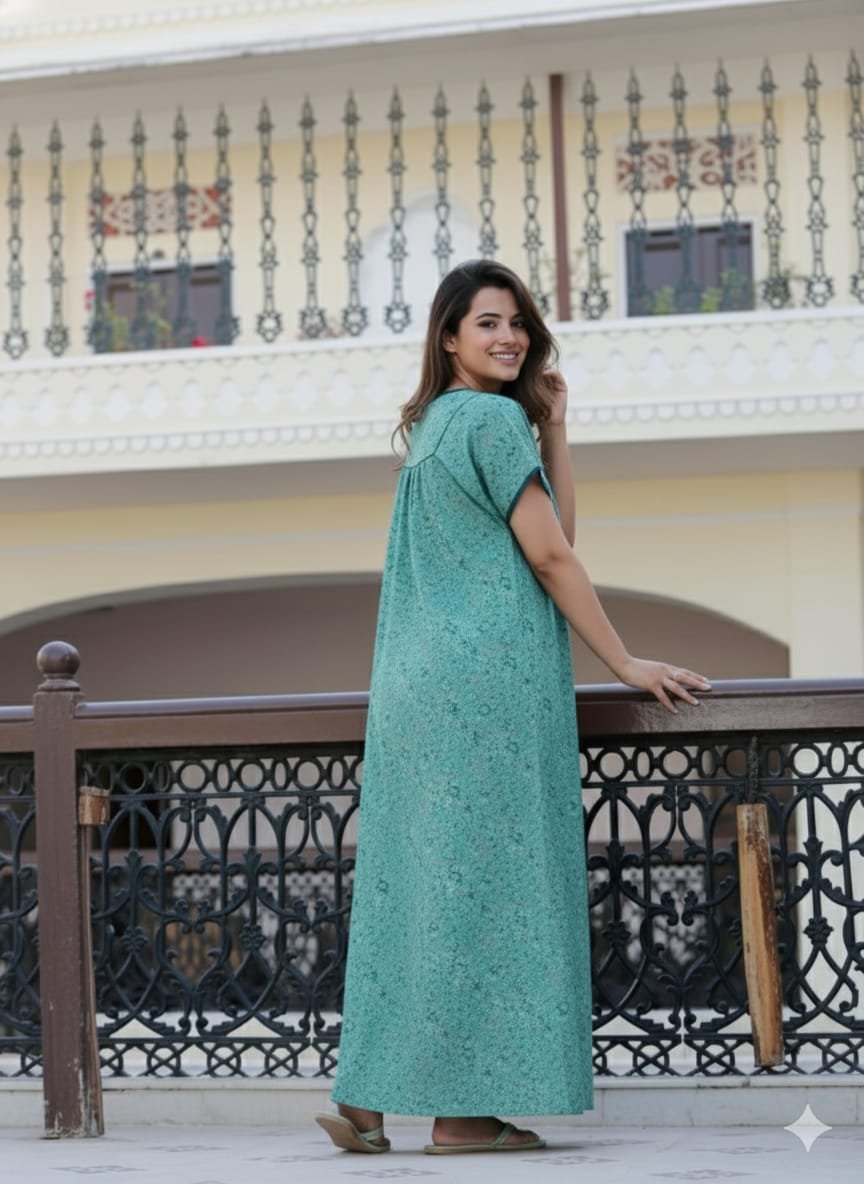 Stylish Cotton Printed Gown Ankle Length Nighty Free Size