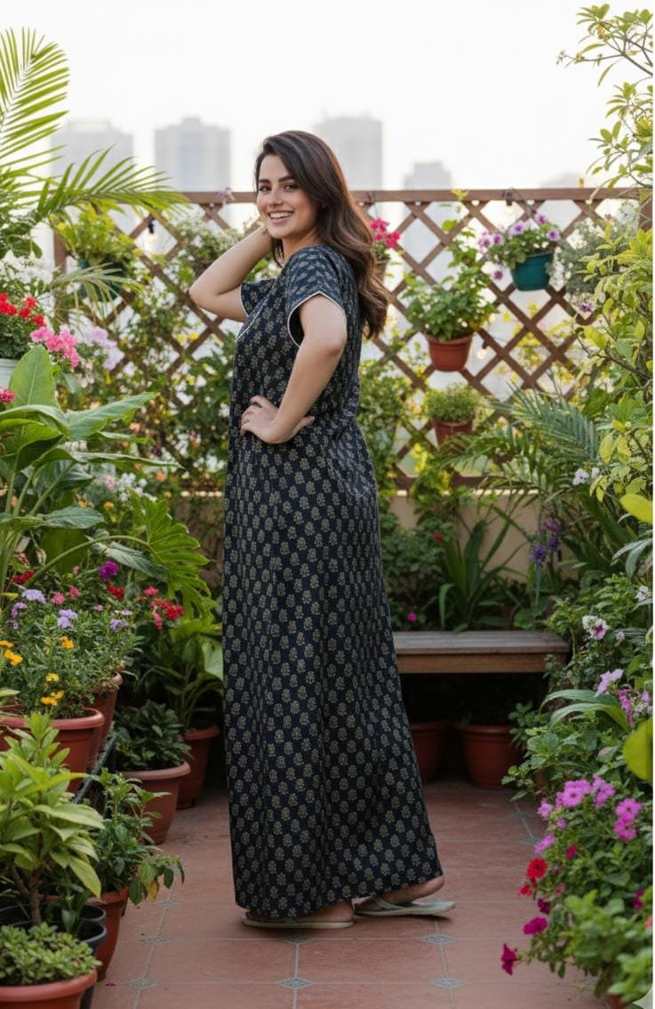 Stylish Cotton Printed Gown Ankle Length Nighty Free Size